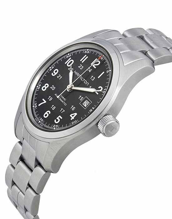 Наручные часы Швейцарские механические часы с автопозаводом Hamilton Khaki Field Auto H70515137 на стальном браслете, с водозащитой 10 бар и международной гарантией от производителя