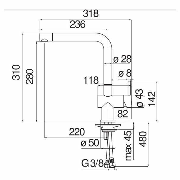 | Подвод воды | шланги / 390 мм / G 3/8" |