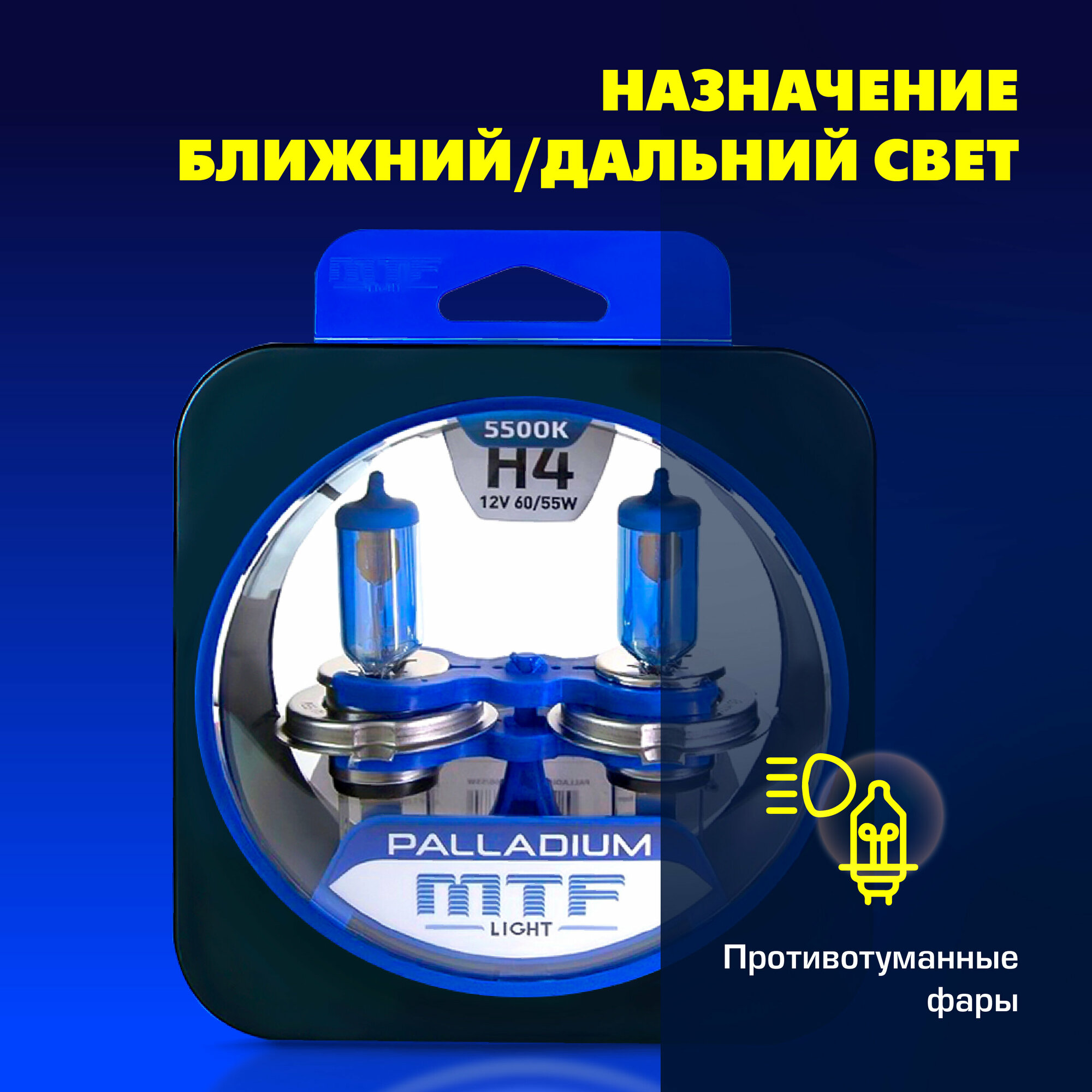 Автолампы Лампы галогенные автомобильные H4 MTF PALLADIUM 12V 55W 5500K 2 шт.