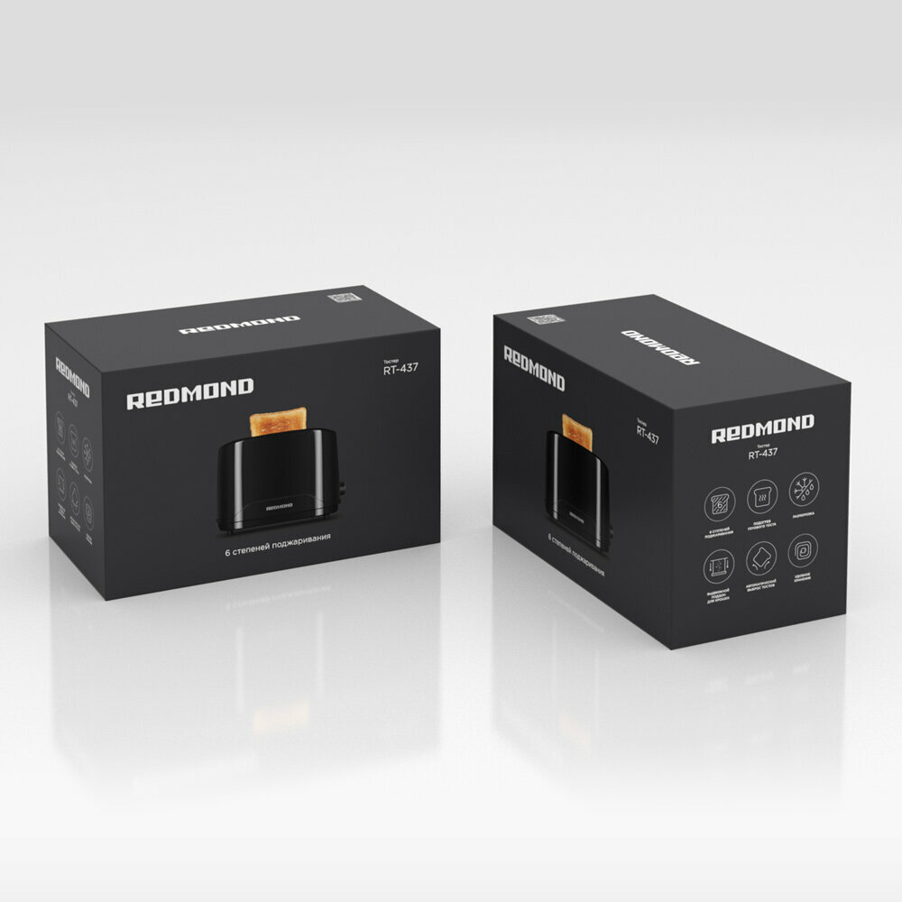Тостеры, бутербродницы и вафельницы Тостер Redmond RT-437 черный, 750 Вт, тостов - 2, подогрев, размораживание