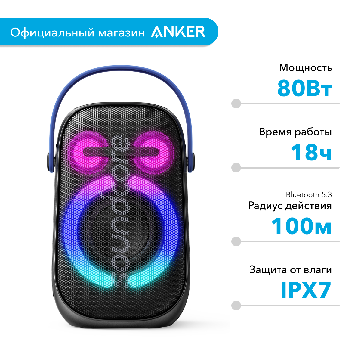 Лучшие цены. Rave Neo 2 - супермощная беспроводная колонка с динамичной подсветкой. На выходе выдает до 98 Дб. Rave Neo 2 заполняет пространство вокруг невероятной мощью и насыщенным звучанием. Хотите почувствовать атмосферу ночного клуба прямо у себя дома или на даче? Тогда беспроводная колонка от бренда Anker - это то, что вам нужно! Технология BussUp усиливает басы, наполняя музыку силой ударных. Яркая ритмичная индикация на панели колонки (Beat-Driven Light Show) дополняет улетный звуковой эффект. Магазины в вашем городе.