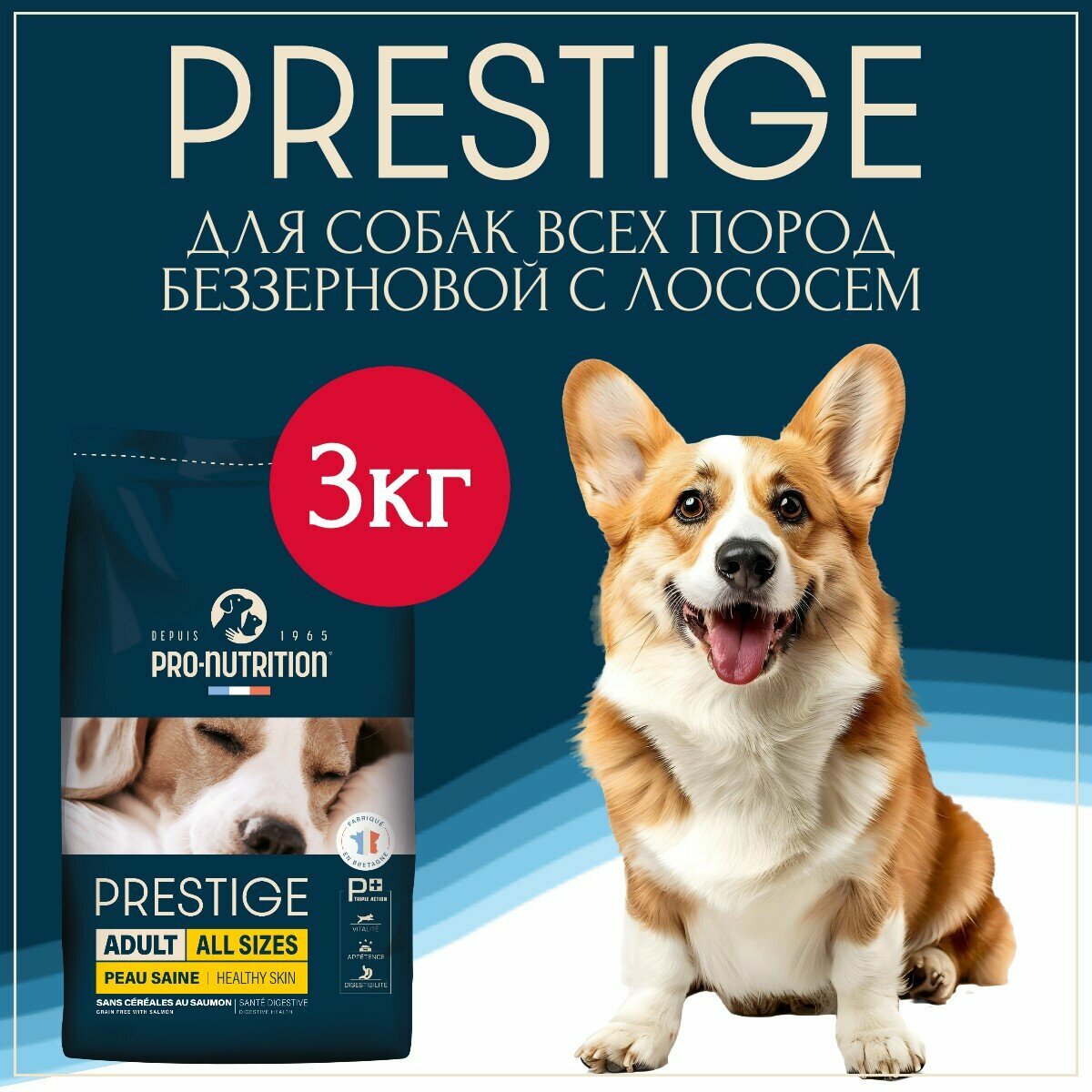 Корм для собак Гипоаллергенный, беззерновой сухой корм для собак крупных, средних и мелких пород New Prestige Adult Healthy Skin с лососем (3 кг)