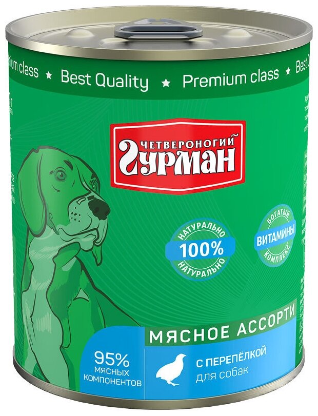 Четвероногий Гурман Консервы для собак "Мясное ассорти" с перепелкой, 100г 0.1 кг