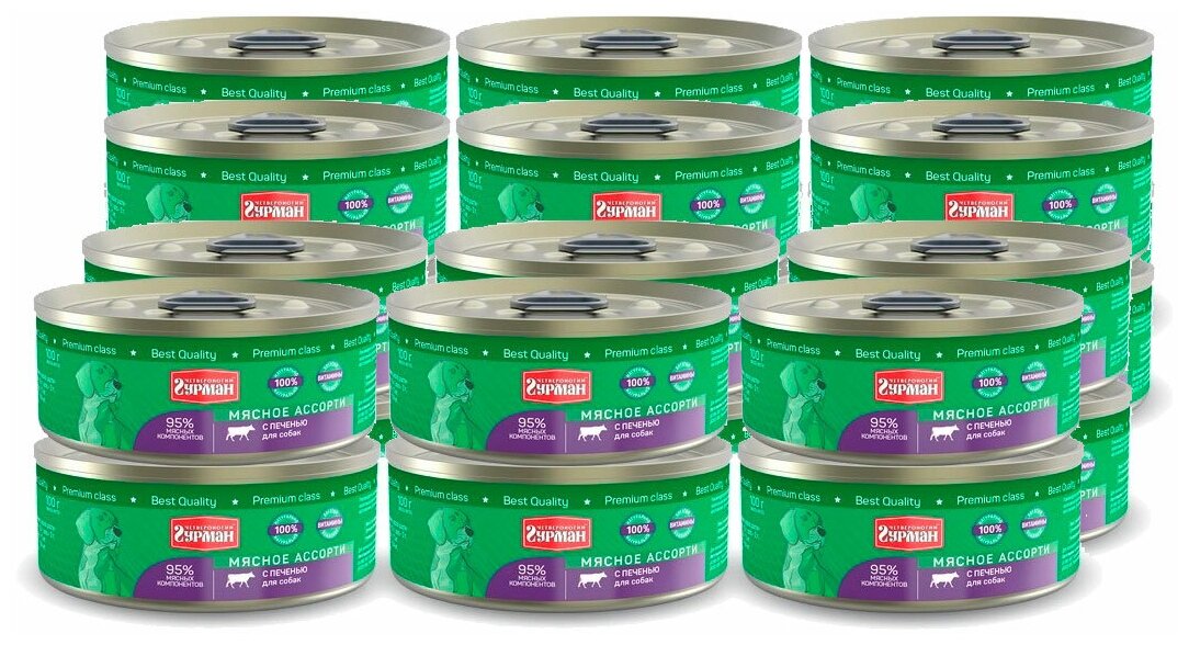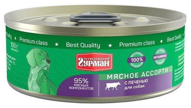 Четвероногий Гурман 41002 консервы для собак Мясное ассорти с Печенью 100г