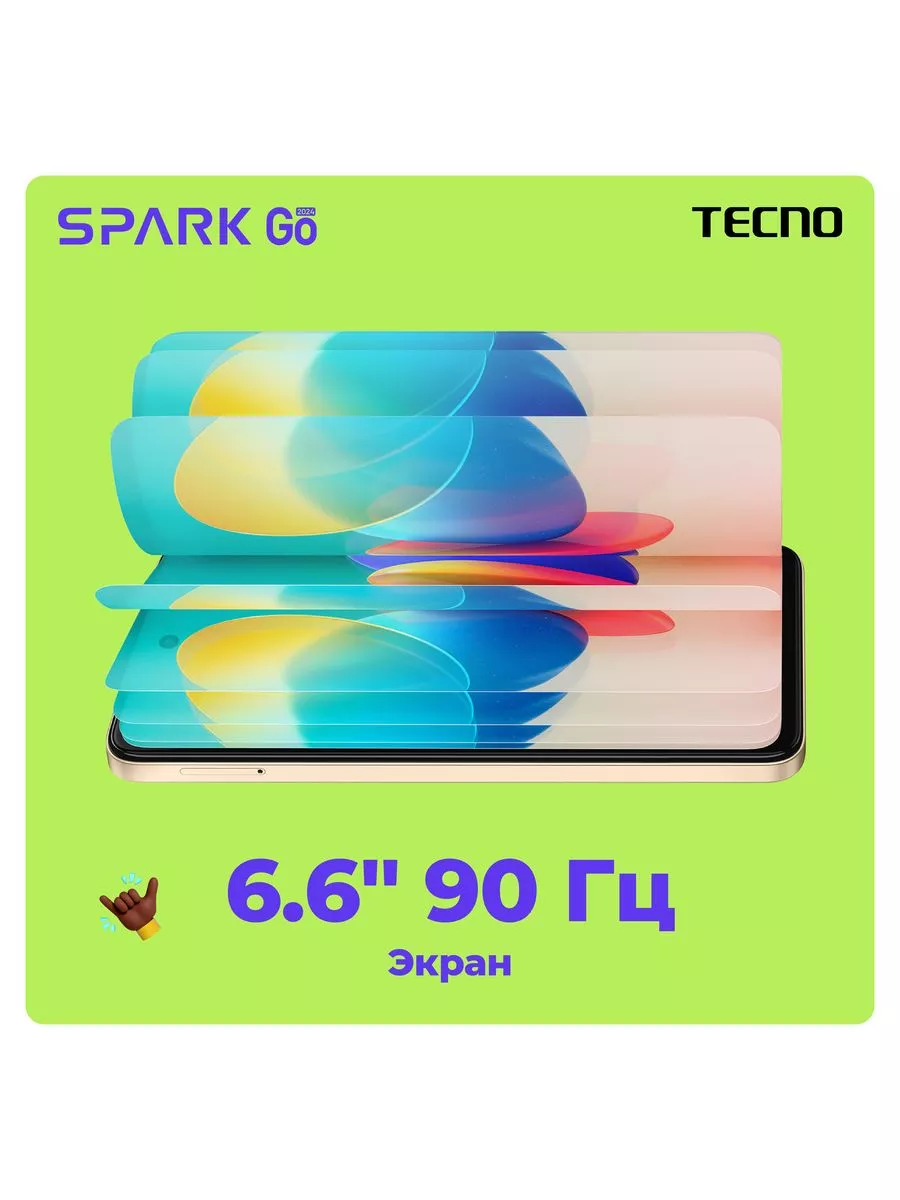 Лучшие цены. Смартфон TECNO Spark Go 2024 4/64 ГБ: яркий дизайн и функциональность Встречайте обновленный дизайн с узнаваемым трехкольцевым блоком камер. Корпус выполнен в двух вариантах: яркая переливающаяся разными цветами текстура, а также экокожа Magic Skin 2.0 в свежем оттенке из безвредного экологичного материала. Выберите свой стиль! Погрузитесь в яркий мир контента на большом экране 6.6”. Благодаря редкому в своем классе соотношению экрана к корпусу 90.5%, вы почувствуете неповторимое визуальное наслаждение. Магазины в вашем городе.