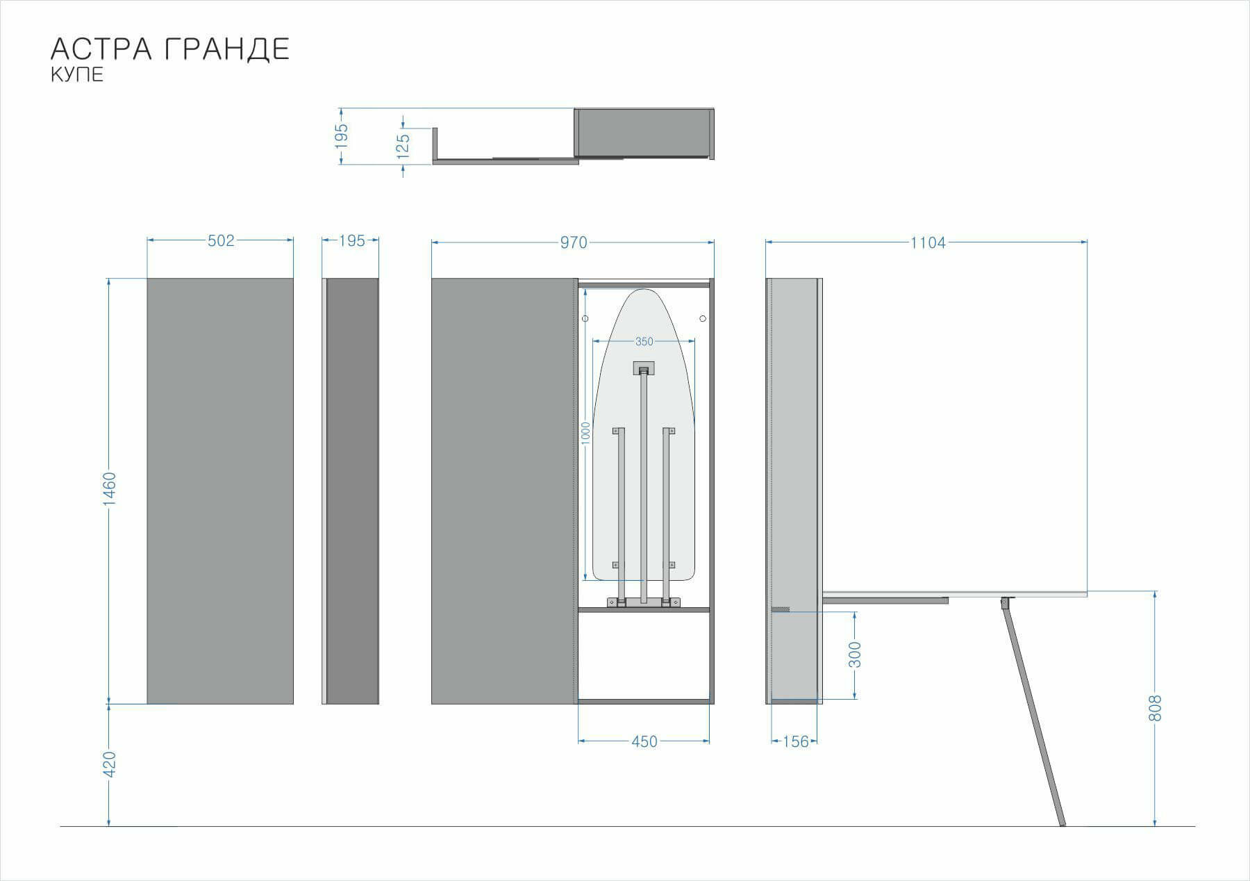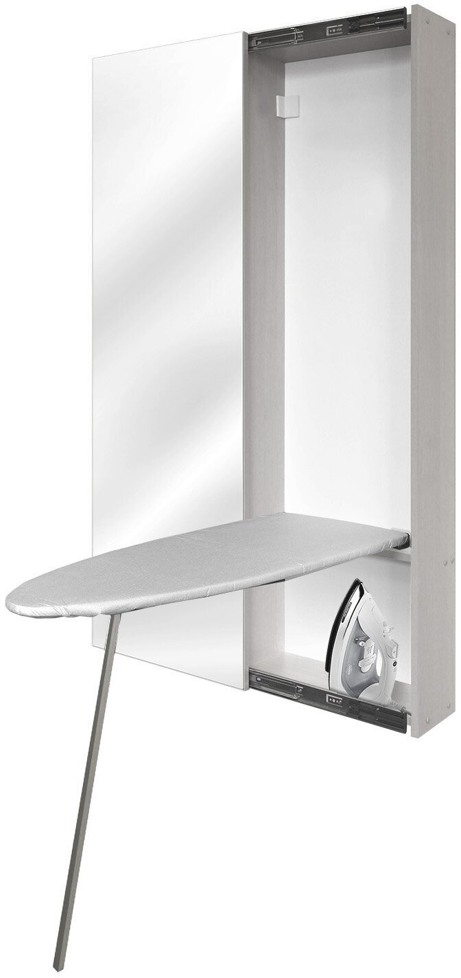 Гладильные доски Встраиваемая настенная гладильная доска с зеркалом Астра Гранде цвет Беленый Дуб (открывание купе налево)