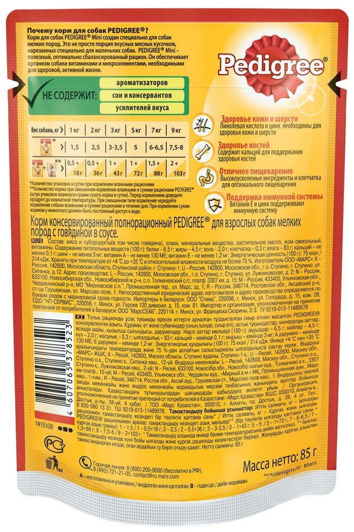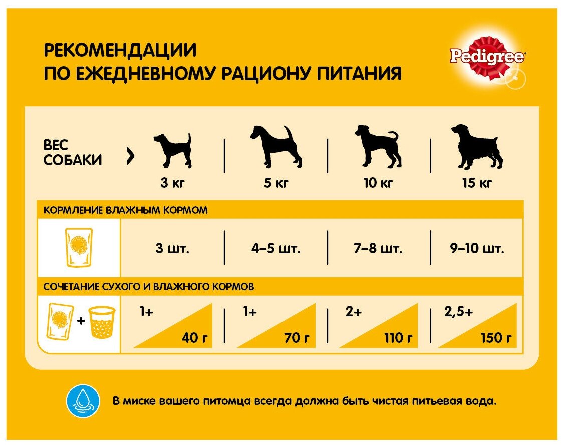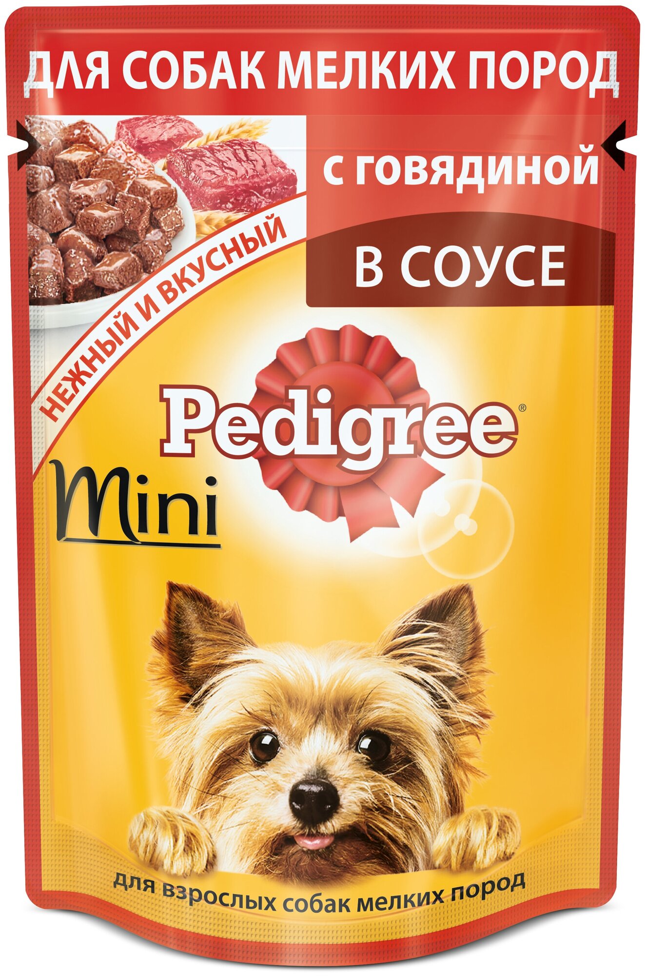 Лучшие цены. Теперь в ассортименте паучей Pedigree есть линейка продуктов именно для собак мелких пород. Очень вкусный сбалансированный, полнорационный продукт для любимых приверед! Разработан с учетом потребностей собак мелких пород. Это аппетитные мясные кусочки из говядины в специальной нарезке для мелких собак в ароматном соусе - уникальный микс мяса и субпродуктов с повышенной усвояемостью. Магазины в вашем городе.