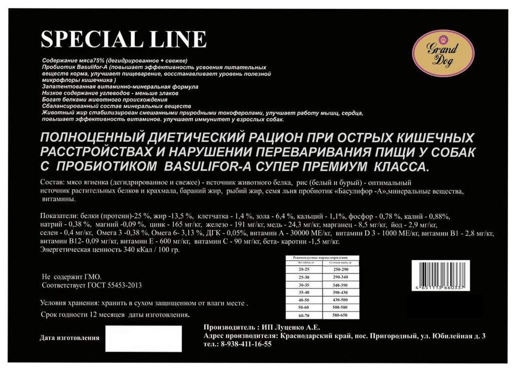 Лучшие цены. Для собак Grand Dog диетический при острых кишечных расстройствах и нарушении переваривания пищи у собак с пробиотиком Basulifor-A супер-премиум класса. Магазины в вашем городе.