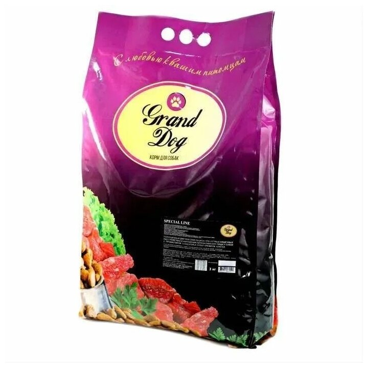 Корм для собак Полнорационный диетический корм при острых кишечных расстройствах и нарушении переваривания пищи у собак с пробиотиком Grand Dog Гранд Дог 3 кг
