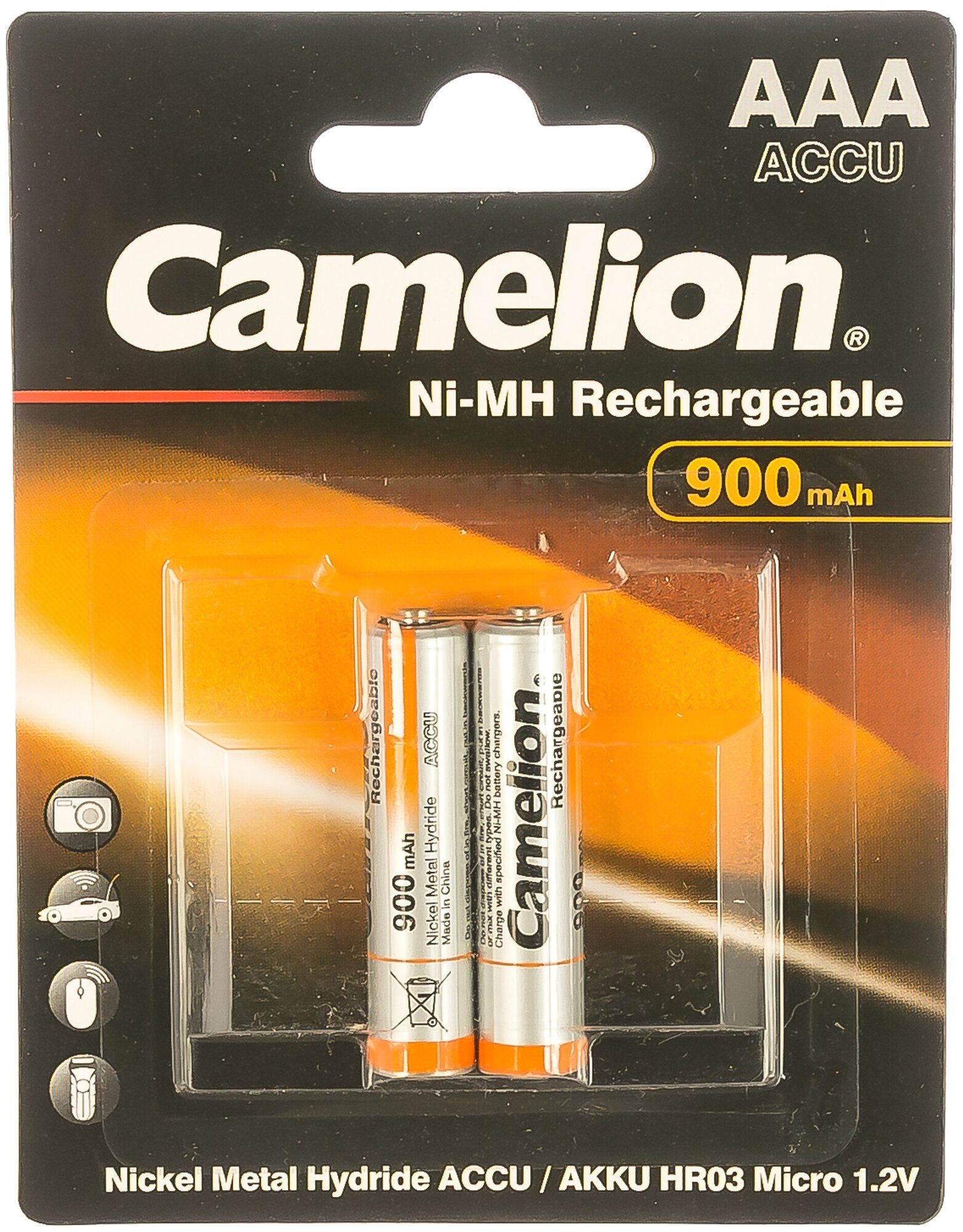 Зарядки аккумуляторных батареек Camelion, AAA900mAh/2BL, аккумуляторная батарейка, Ni-Mh, в блистере