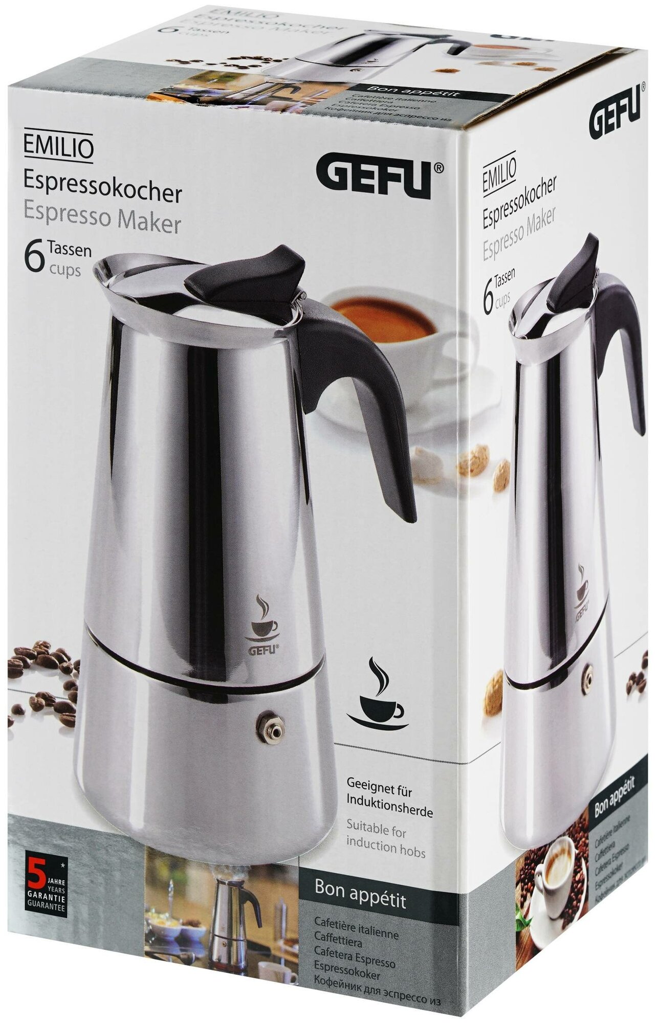 Кофемолки Кофеварка гейзерная GEFU серия Эмилио, 140 мл, на 2 чашки эспрессо