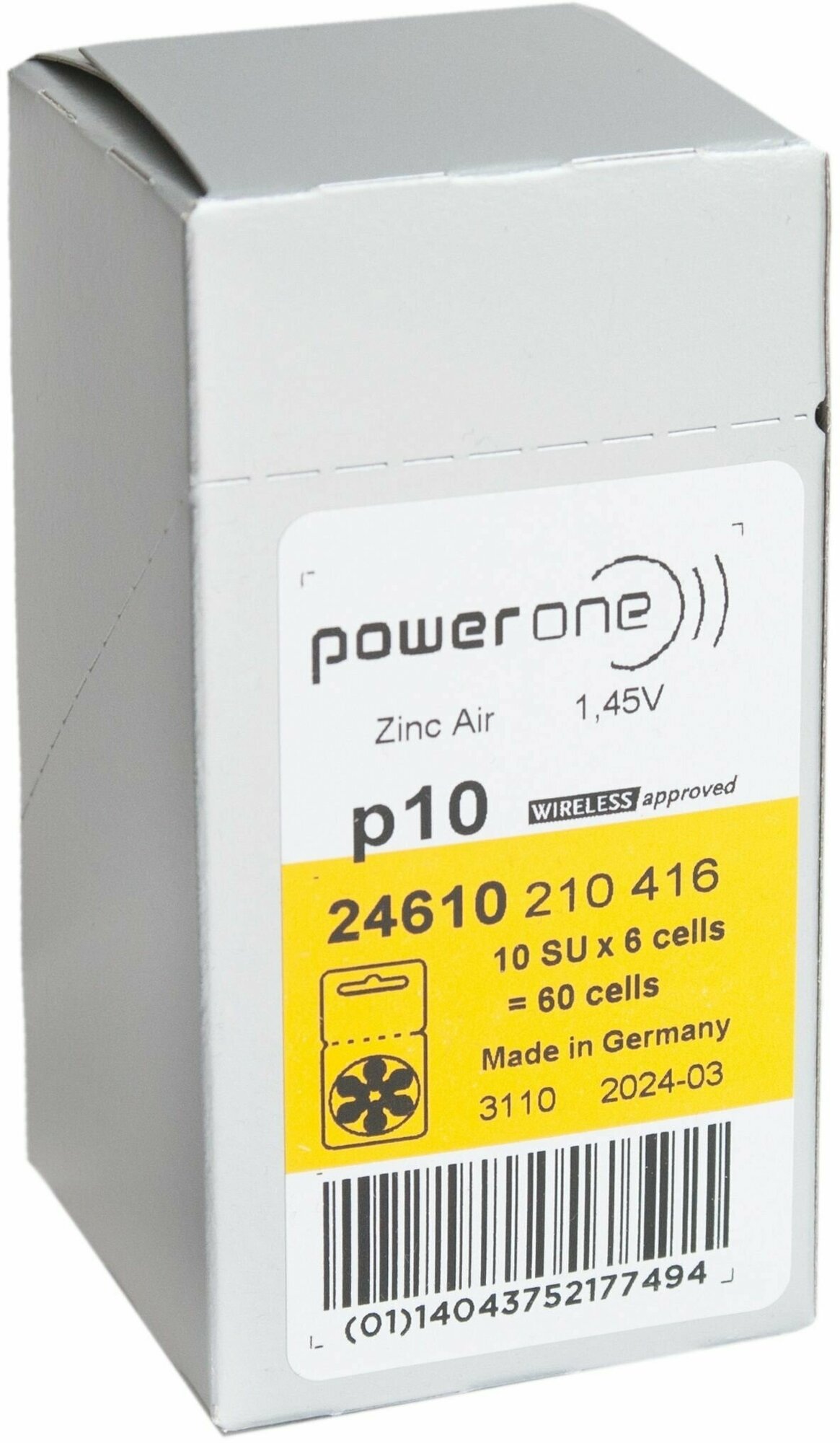Батарейки для слухового аппарата Power One p10, 60 шт