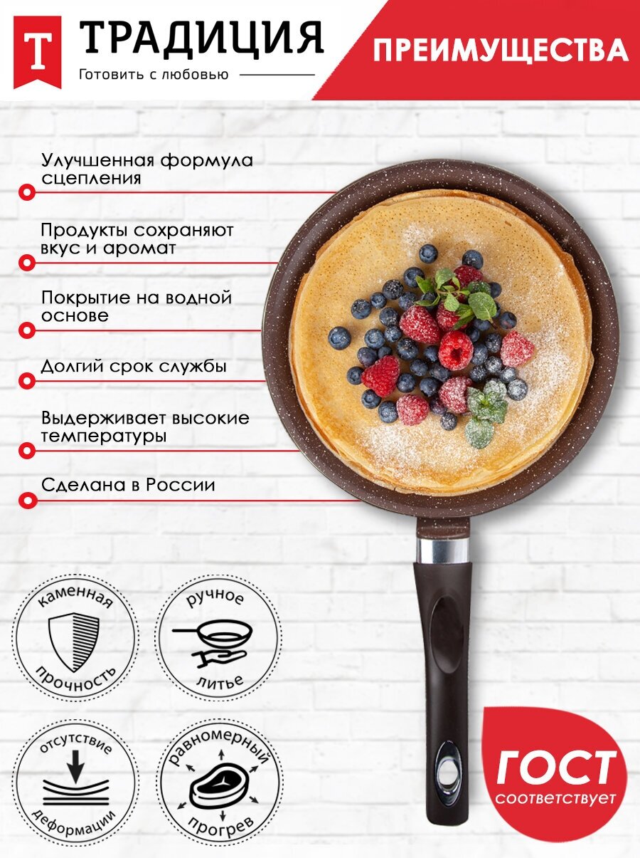 Сковородки Сковорода блинная литая с антипригарным покрытием Традиция Доломит 24 см