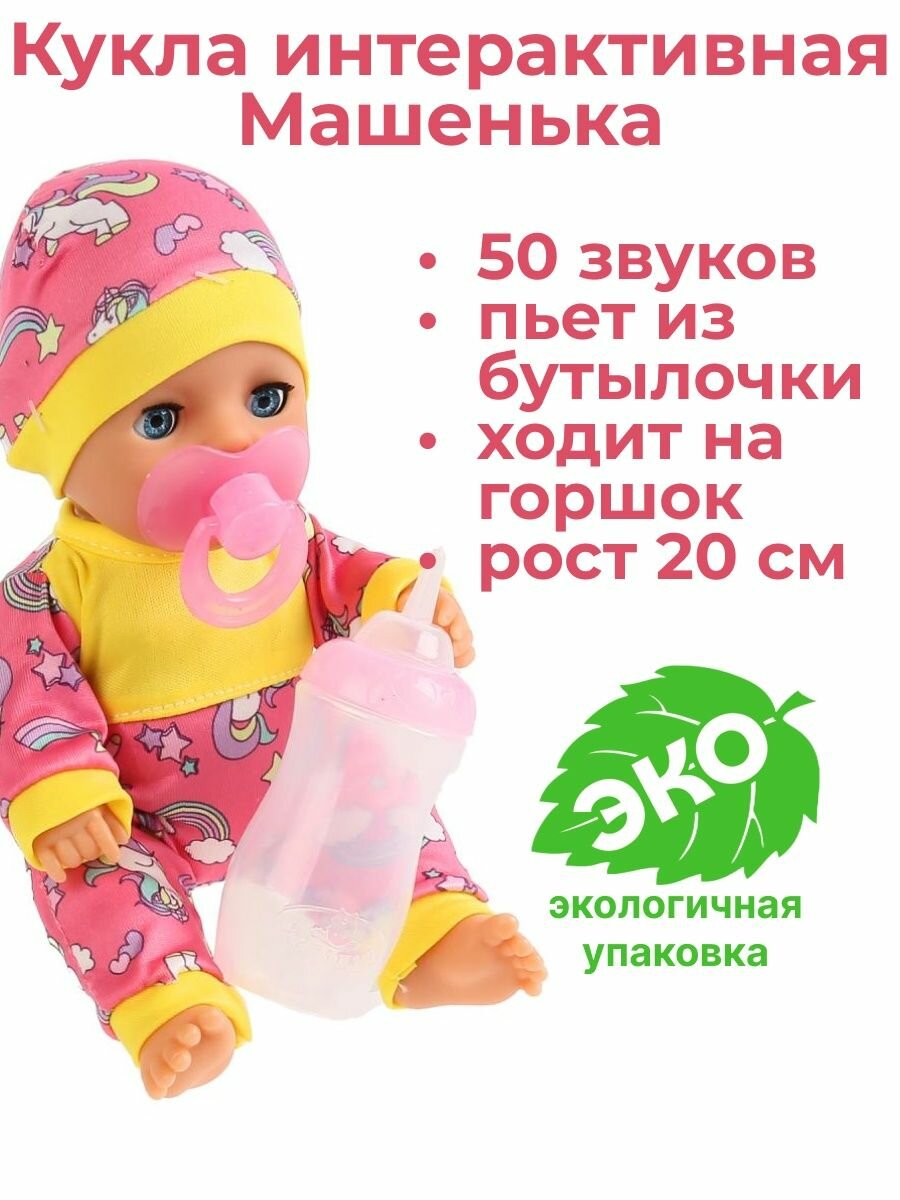 Кукла Пупс озвученный Машенька 20 см пьет, писает, 3 аксессуара, кор карапуз