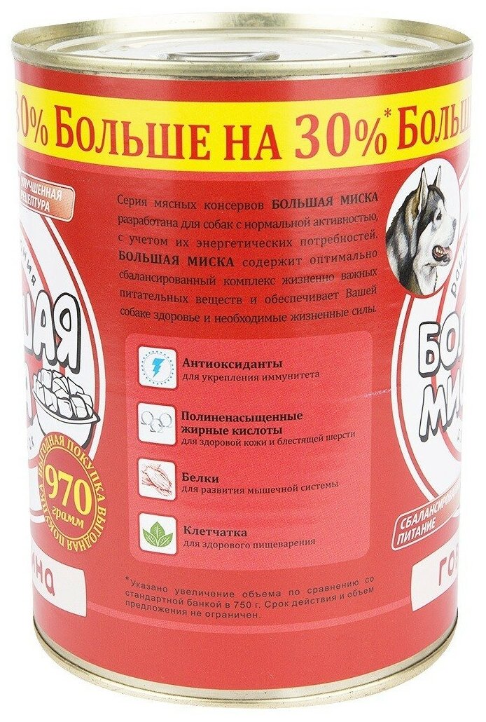 Корм для собак Консервы Зоогурман Большая миска для собак говядина 970г