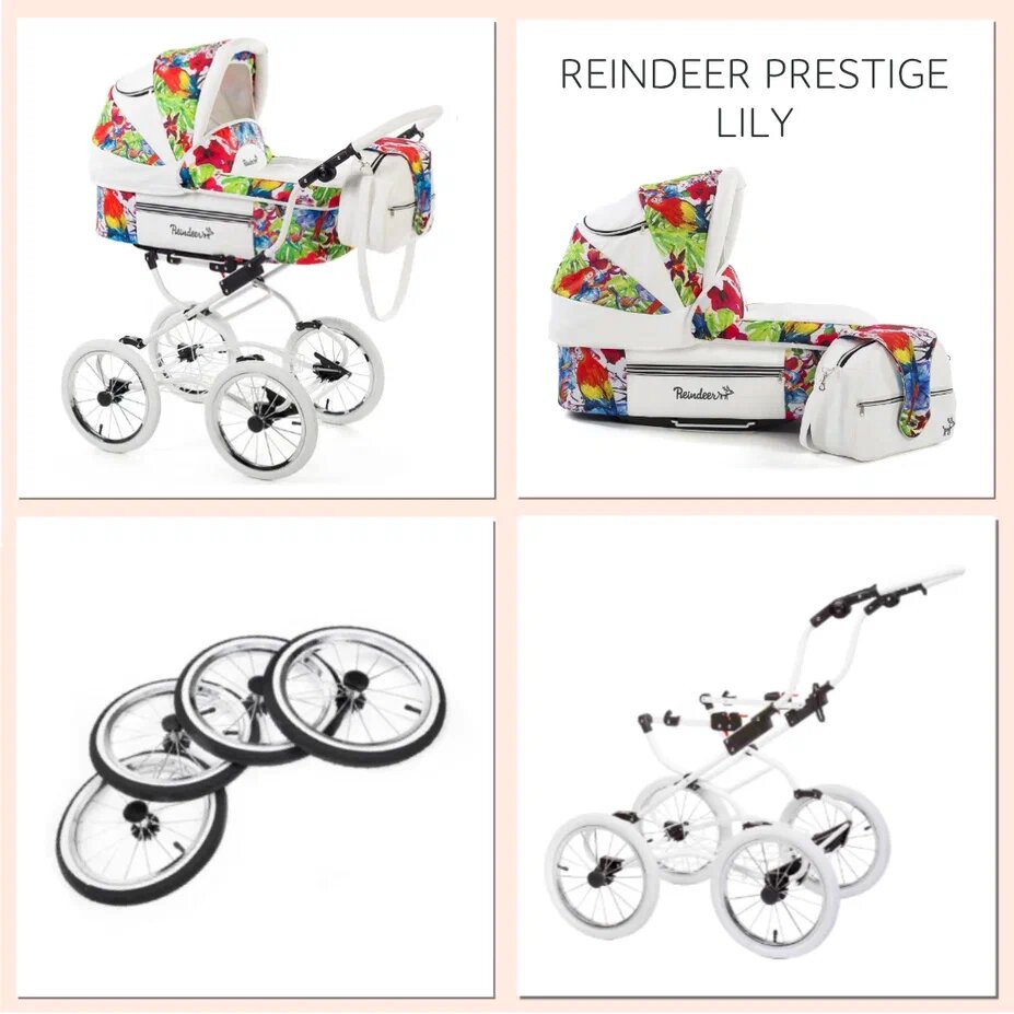 Коляска Коляска детская Reindeer Prestige Lily, люлька на раме, цвет белый+цветные вставки L-4, всесезон