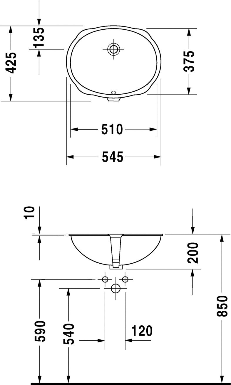 Умывальник Duravit Santosa Раковина 51x37,5 cм, встраиваемая снизу, с переливом., цвет белый 0466510000