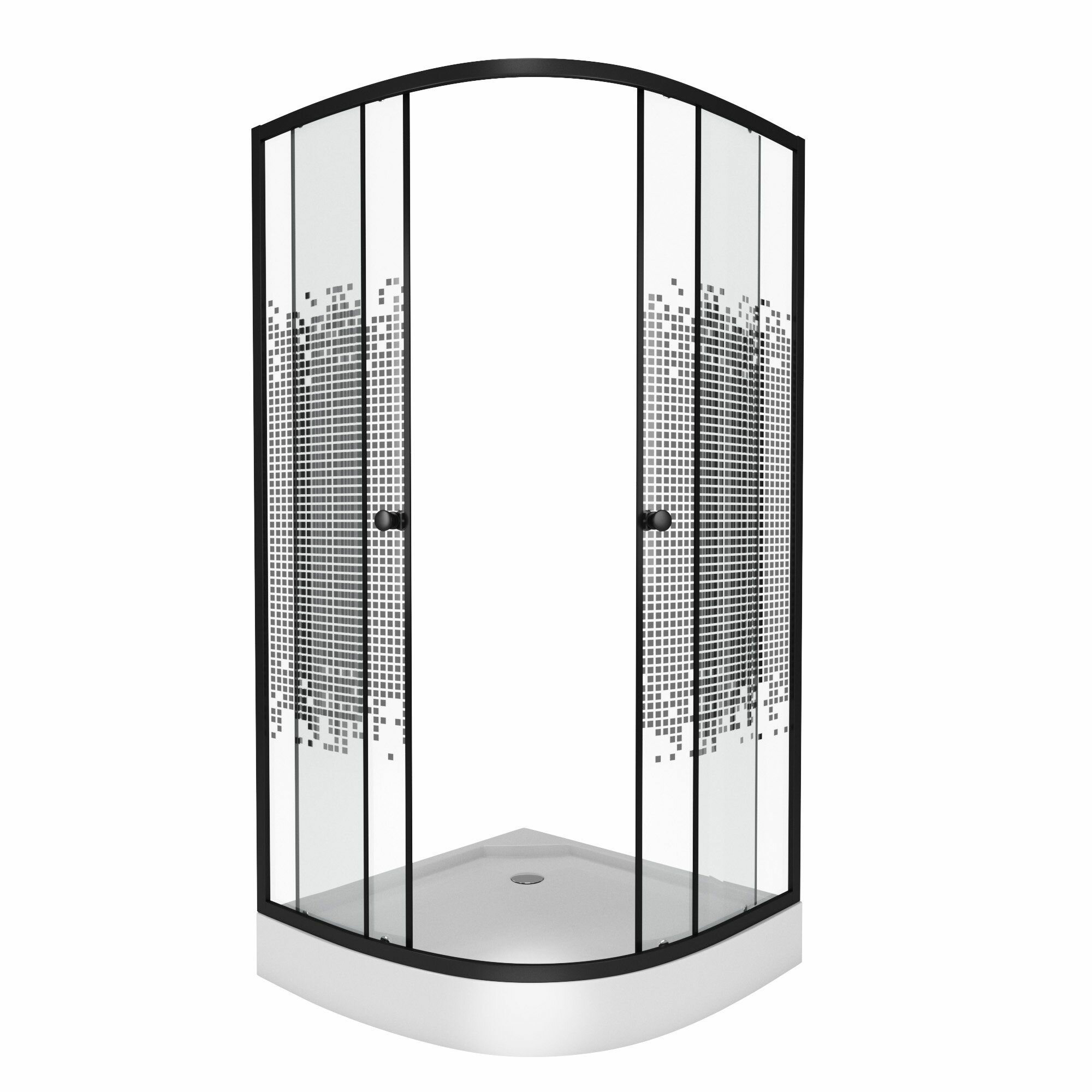 Лучшие цены. Душевой угол Niagara NG 007-14 BLACK простое хорошее душевое ограждение. Крепкий акриловый поддон на металлическом каркасе, максимальная нагрузка до 300 кг. Высота поддона от пола 15 см, глубина чаши 4 см, тип душевого угла четверть круга, размер 90x90, высота 195 см. Стекло душевого ограждения прозрачное с черным рисунком Мозаика, черный профиль. Система дверей раздвижные с ручками. Характеристики: Серия: EcoШирина, см: 90Глубина, см: 90Высота, см: 195Вес ТО, кг (вес товара без упаковки). Магазины в вашем городе.