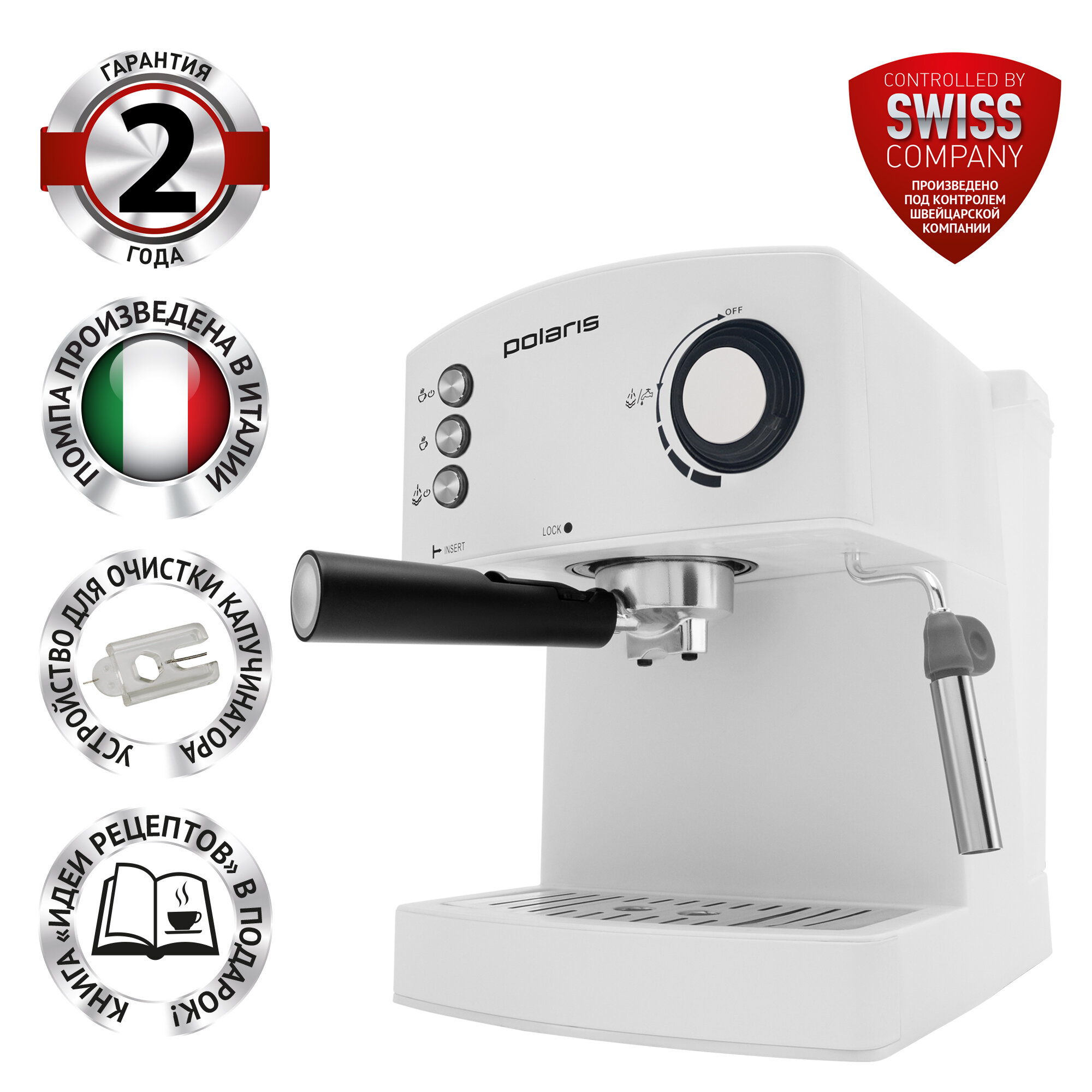 Кофеварка Polaris PCM 1527E, рожковая, 850 Вт, капучинатор, белая Polaris 9661603 .