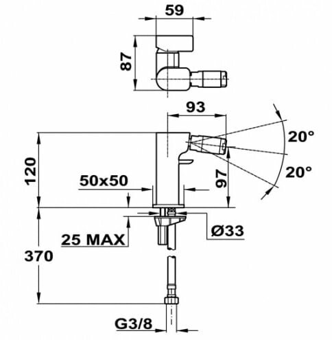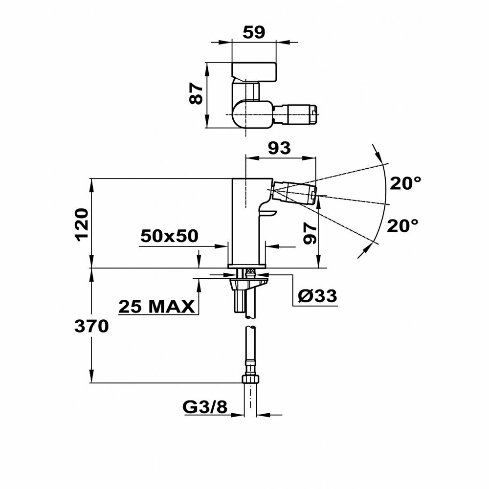 | Регулировка угла струи | +/- 20 ° |