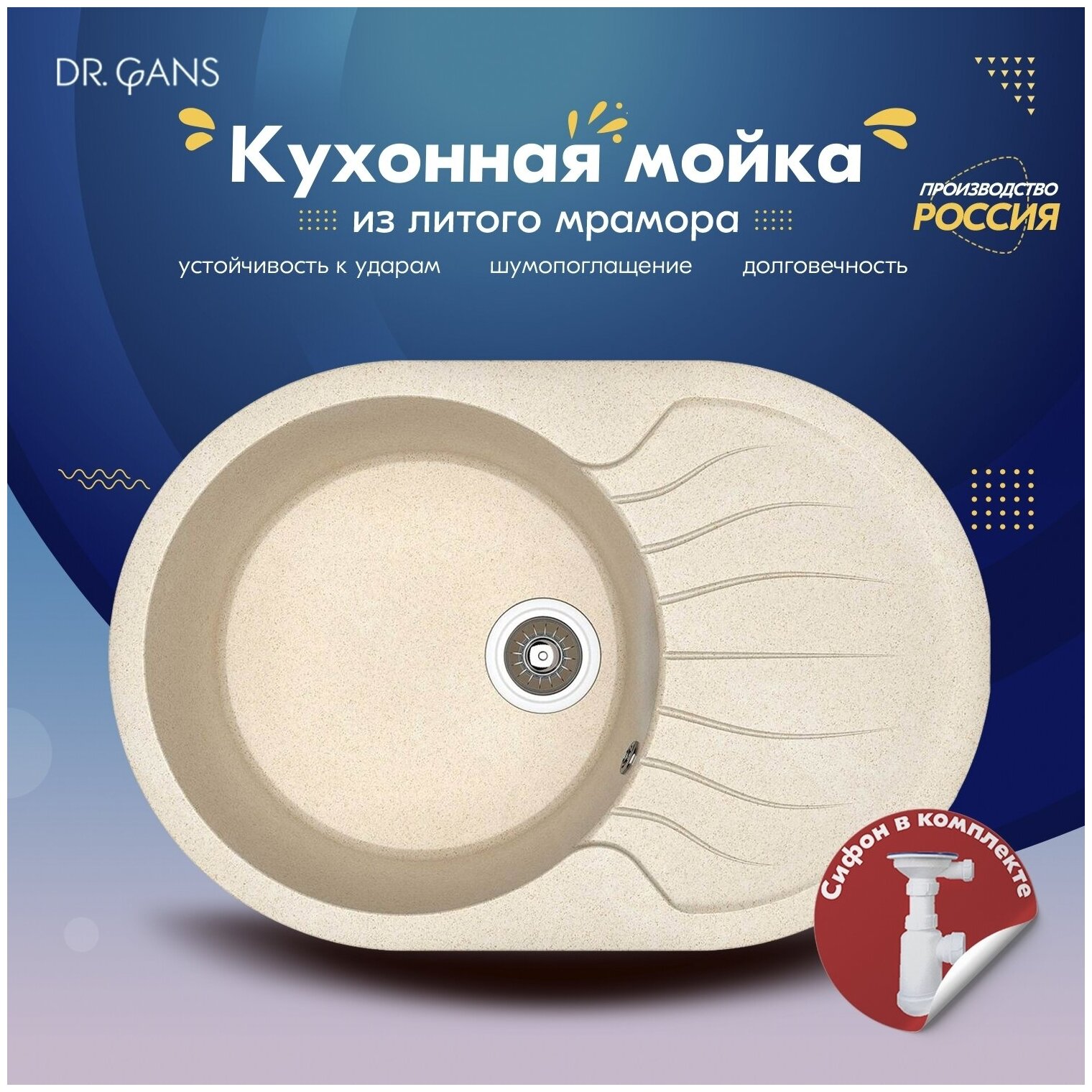 Мойка кухонная из искусственного мрамора Dr. Gans Берта 760 (цвет дюна) 7 700 ₽ Подробнее