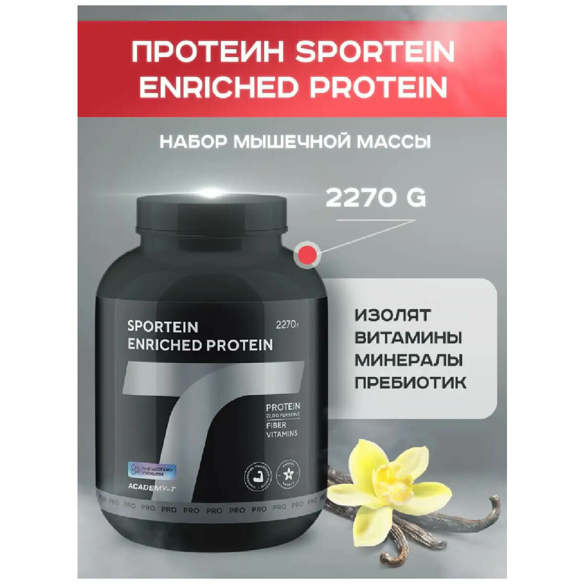 Академия-Т Протеин SPORTEIN Enriched PROTEIN, вкус ваниль, 2270 г, Академия-Т