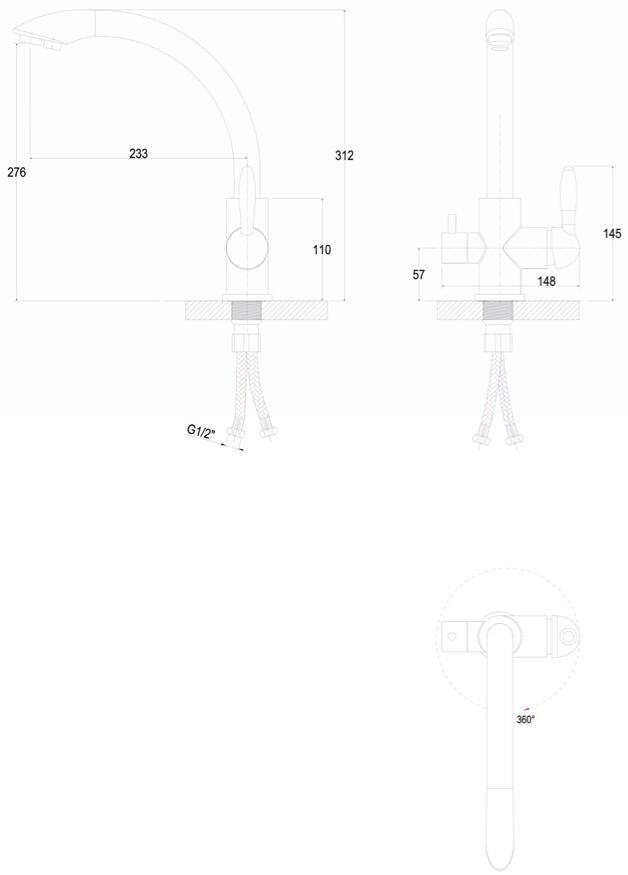| Подвод воды | шланги / 450 мм / G 1/2" |