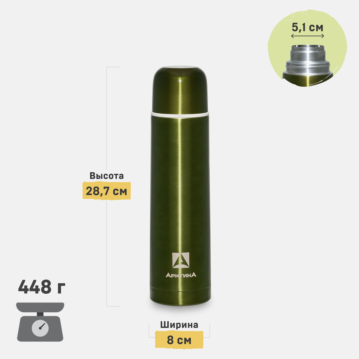 Термос с узким горлом Арктика 1 л, болотный 102-1000 болотный .