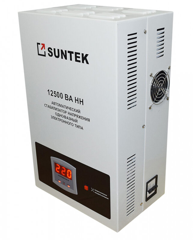 Лучшие цены. Идеально подойдет для тех у кого питающее напряжение далеко от идеального, можно включить несколько приборов одновременно. Стабилизатор проконтролирует все сам и выдаст 220 Вольт для питания приборов. Стабилизатор напряжения пониженного напряжения 12500ВА SUNTEK - оптимальный выбор при поиске надежного качественного стабилизатора, способного из 100-а Вольт сделать 220 Вольт. Установить данную модель можно на весь дом (суммарная нагрузка не должна превышать 12 кВт). Магазины в вашем городе.