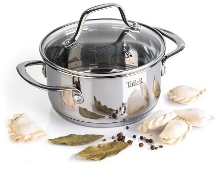 Лучшие цены. Кастрюля из нержавеющей стали TalleR TR-11081 «Элиас» с крышкой 1,5 л (старый артикул TR-1081) Размеры: 16 х 8 см (диаметр х высота без крышки). Кастрюля выполнена из нержавеющей стали - 18/10. Толщина стенок - 0,6 мм. Толщина дна - 2,8 мм. Полировка снаружи - зеркальная, внутри - зеркальная. Крышка из жаропрочного стекла со стальным ободом с отверстием для выхода пара. Ручки на клепках. Есть отметки литража. Магазины в вашем городе.