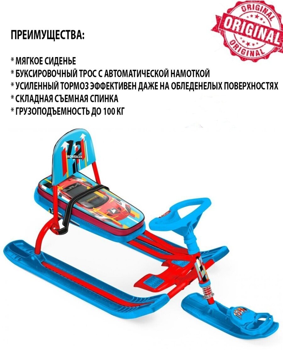 Санки Снегокат детский Nika Тимка спорт 4-1, складная спинка, SportCar, сини-красный, ТС4-1/SC2