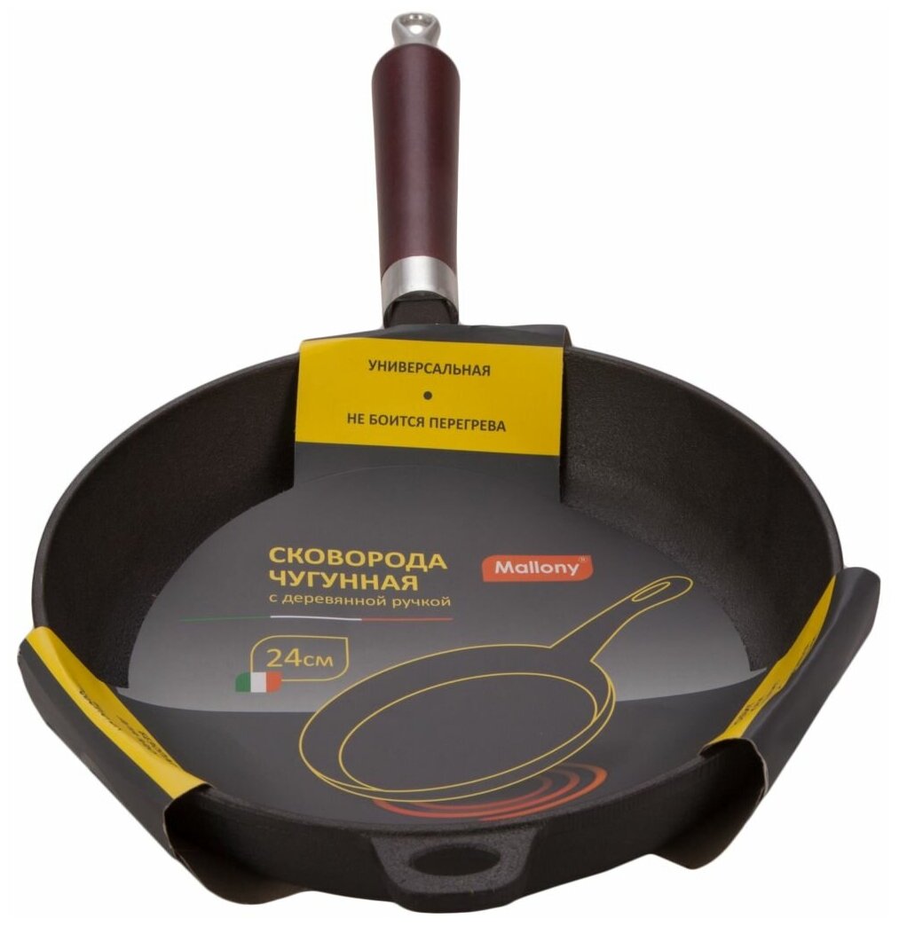 Сковорода чугунная Mallony CIF24-W с деревянной ручкой, 24 см