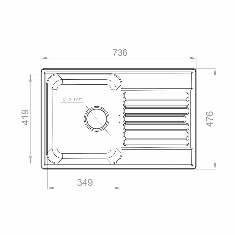 Мойка GRANFEST--QUARZ (ECO) - 78 1 чаша+крыло 740*480 мм (серый)(без сифона)