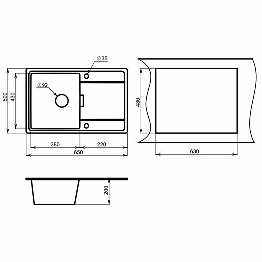 Кухонная мойка кварцевая Granula GR-6503 прямоугольная с крылом, врезная, чаша 380х430, цвет шварц (6503sv) 11 150 ₽ Подробнее