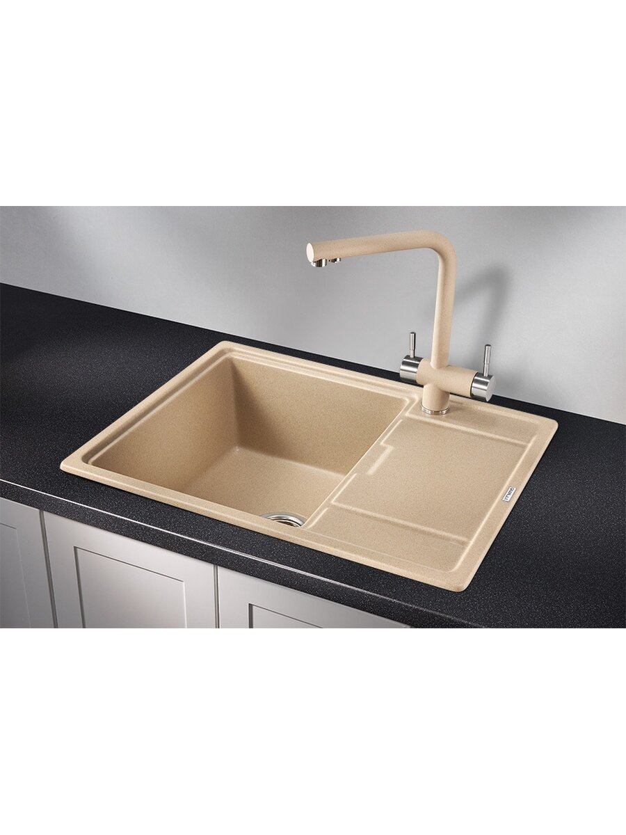 Лучшие цены. Кухонная мойка Granula Gr-6503 песок Размер основной чаши: 380х430х200 мм Ширина шкафа под мойкой: 45 см Отверстие перелива расположено в чаше мойки В комплект входит сливная арматура 3 1/2 (90 мм) с переливом и сифоном Кварцевые мойки Granula, произведённые из композитного материала, имеют приятную на ощупь структуру, которая схожа с поверхностью натурального камня. Они созданы для тех, кто ценит естественную красоту и функциональность. Магазины в вашем городе.