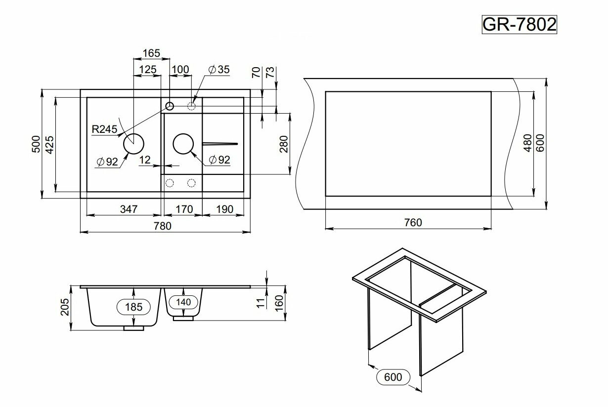 Мойка из композитного материала Granula GR-7802 черный 12 700 ₽ Подробнее