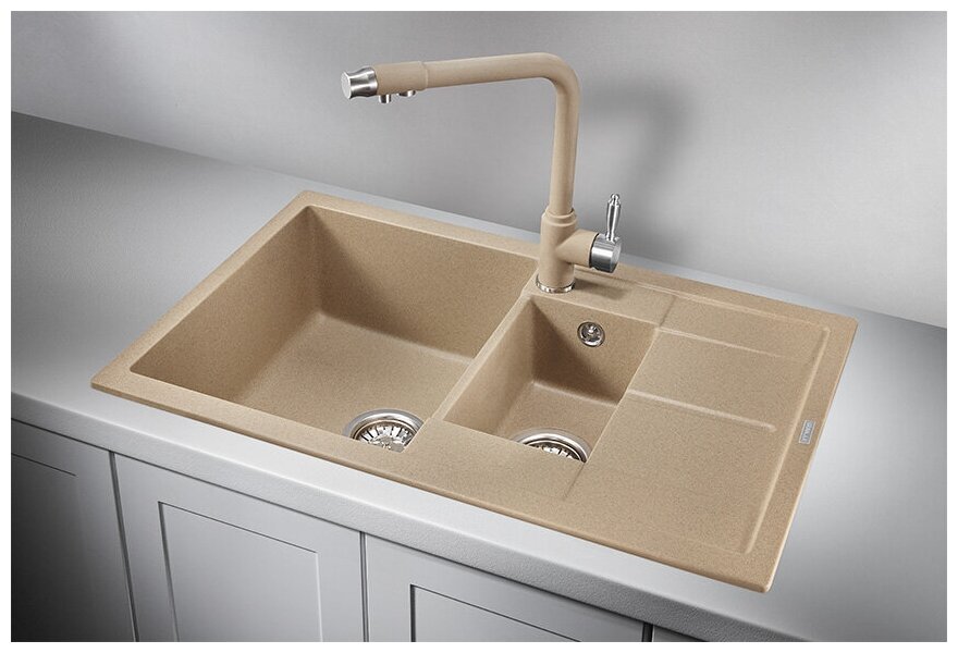 Кухонная мойка кварцевая Granula GR-7802 двухчашевая с крылом, врезная, чаша 350x425, 170x280, цвет песок (7802sa) 13 970 ₽ Подробнее