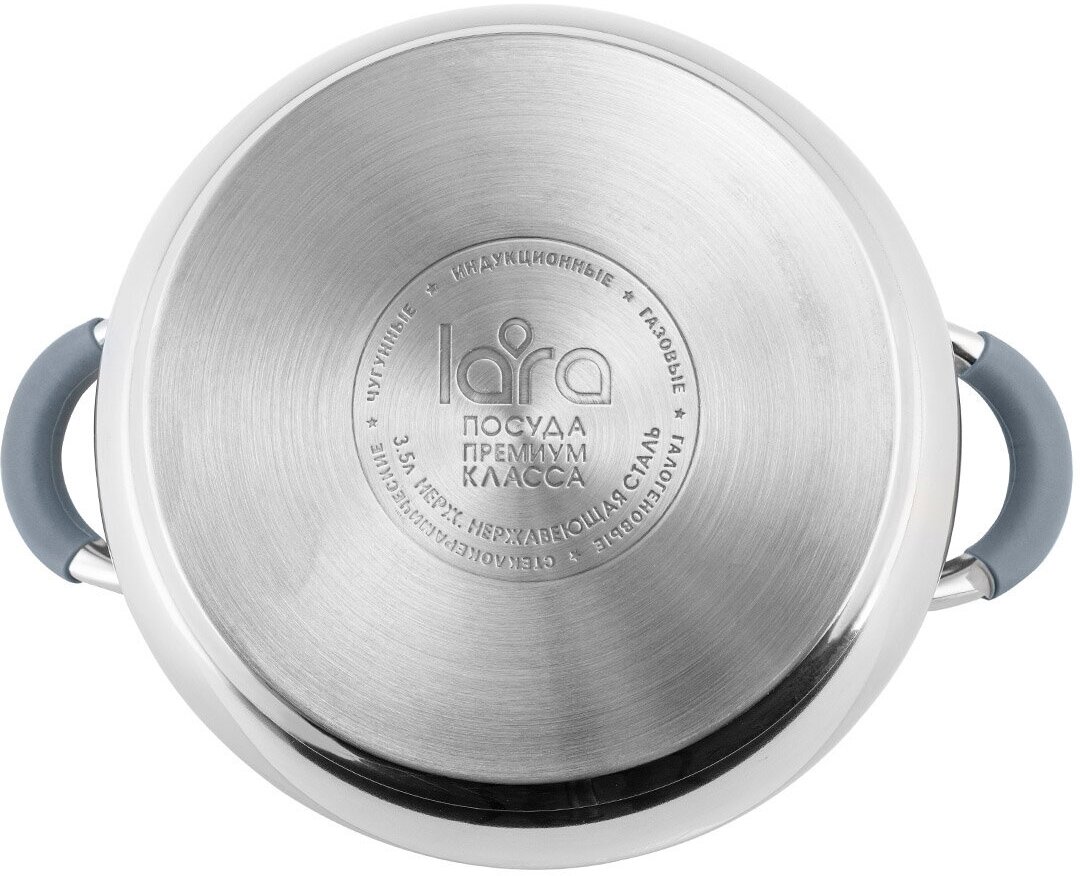 Кастрюля LARA Bell LR02-484, 6.1л, с крышкой, серебристый