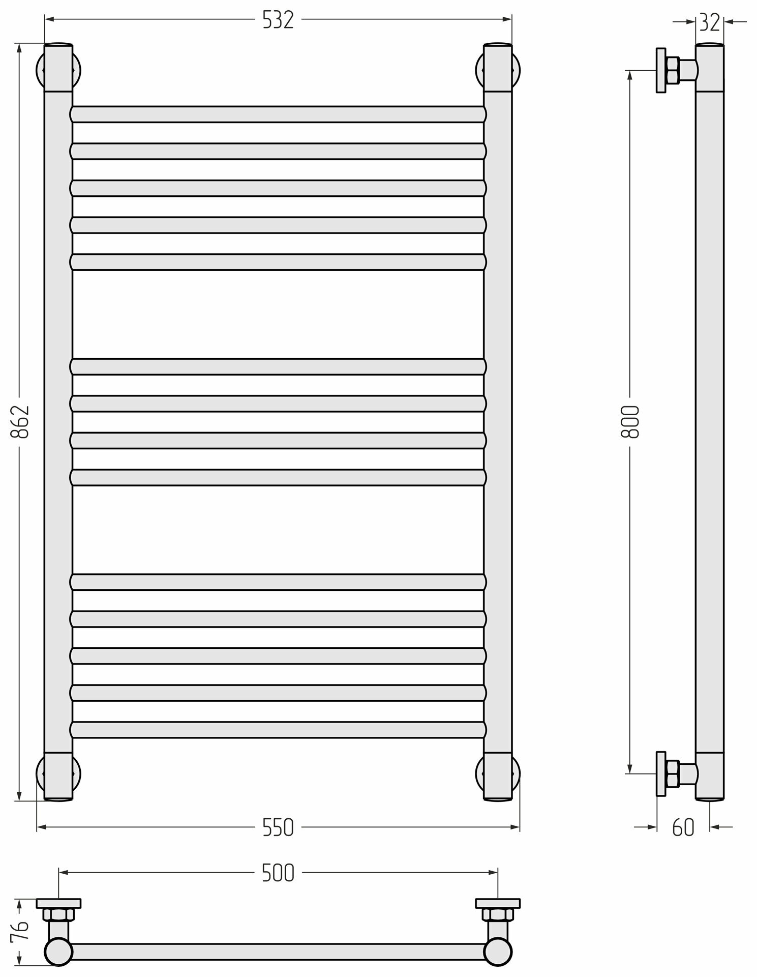 Полотенцесушитель водяной "Богема+" прямая 800х500