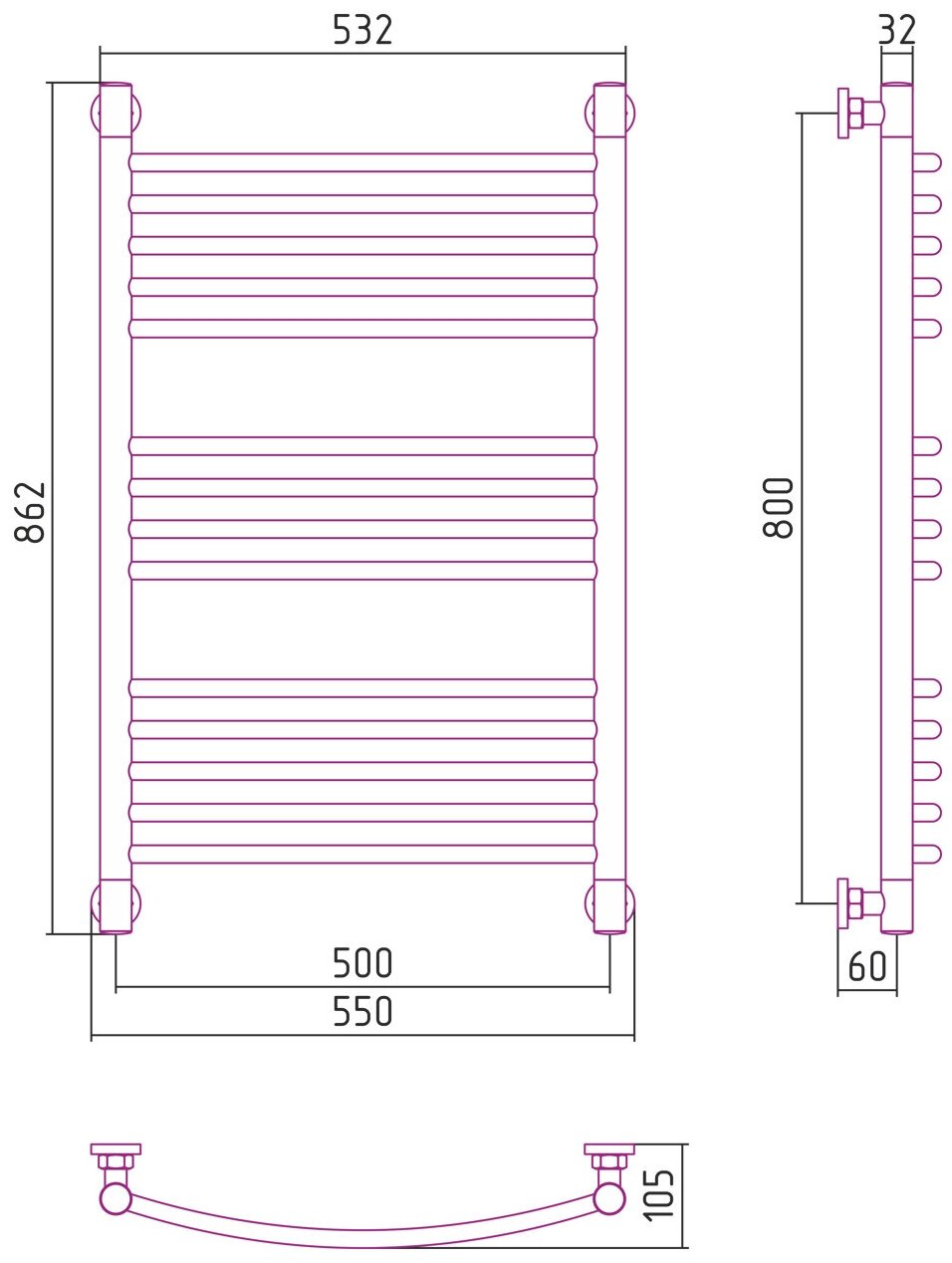 Полотенцесушитель водяной Сунержа Богема+ выгнутая 800x500