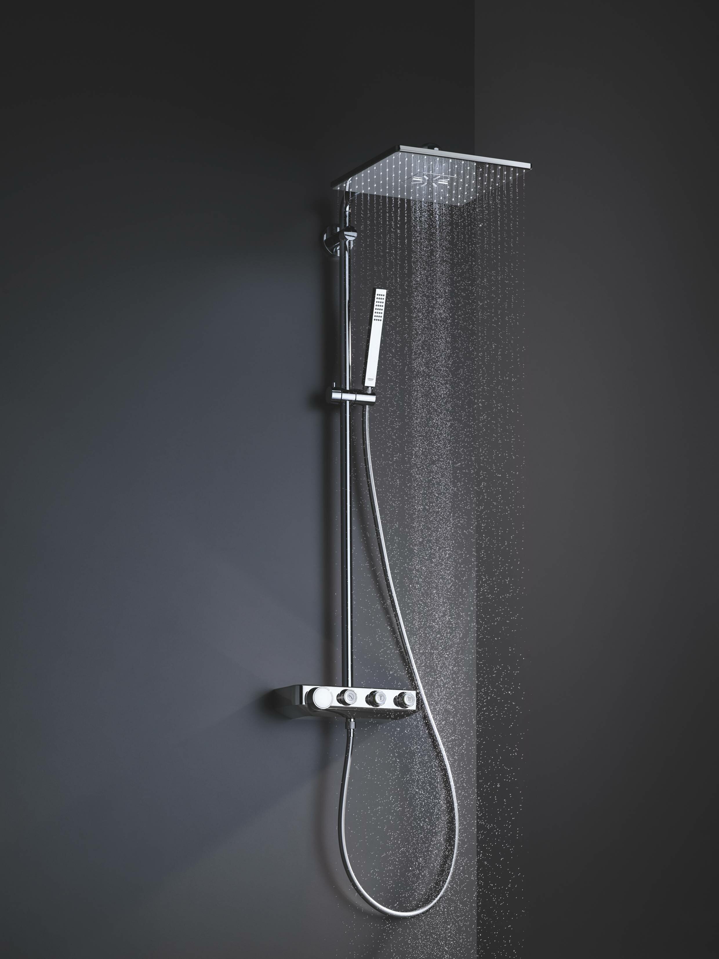 Лучшие цены. - в комплект входят: горизонтальный душевой кронштейн 450 мм, термостат внешнего монтажа SmartControl, Rainshower SmartActive 310 Cube Верхний душ, ручной душ Euphoria Cube (27 699 000) 9,5 л/мин, душевой шланг 1750 мм (28 388 000) - регулируемое верхнее крепление к стене для удобства монтажа в уже существующие отверстия - 2 вида струи: GROHE PureRain, ActiveRain - регулируется по высоте с помощью скользящего элемента - GROHE DreamSpray превосходный поток воды - GROHE CoolTouch Полностью исключается. Магазины в вашем городе.