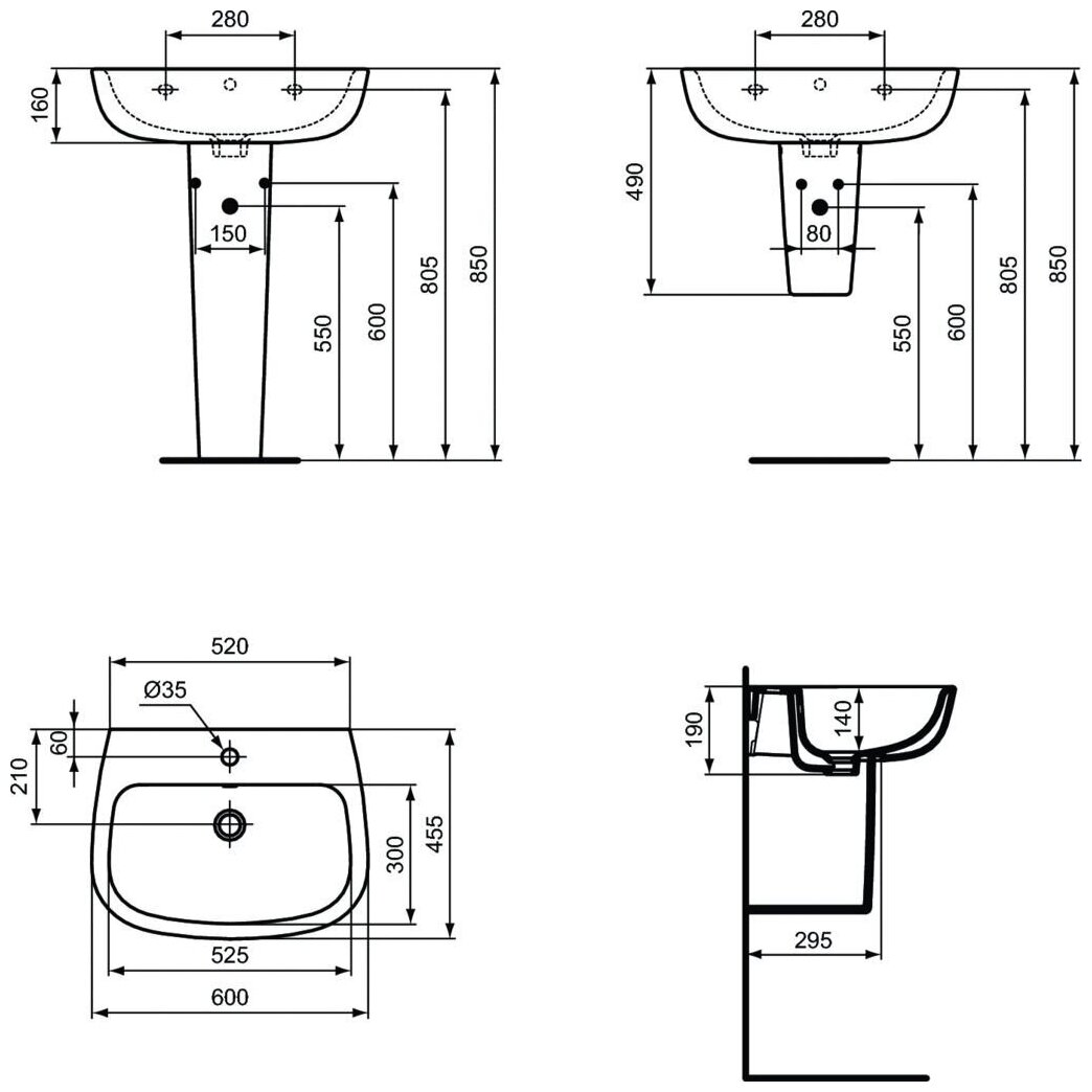 Раковина 60 см Ideal STANDARD Esedra T 2798