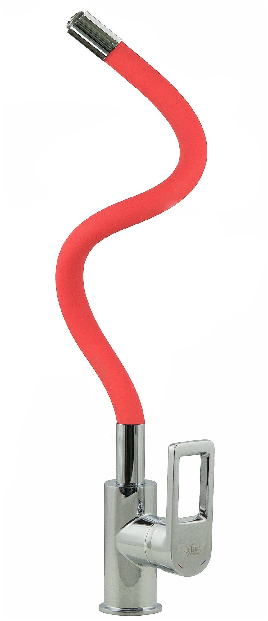 Смеситель одноручный Z35-35U-Red (35 мм) для кухни с гибким цветным изливом, хром/красный