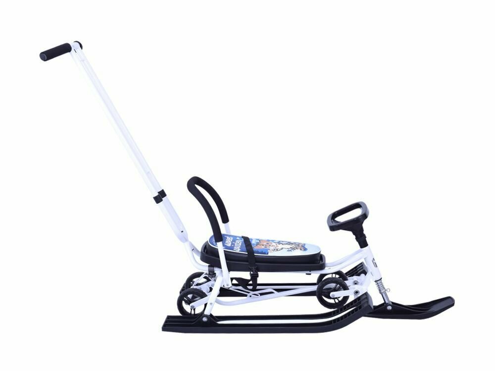 Санки Снегокат Барс 111 Mobile с Т-образным толкателем и колесной базой Sweet Winter белый