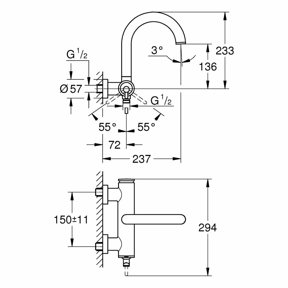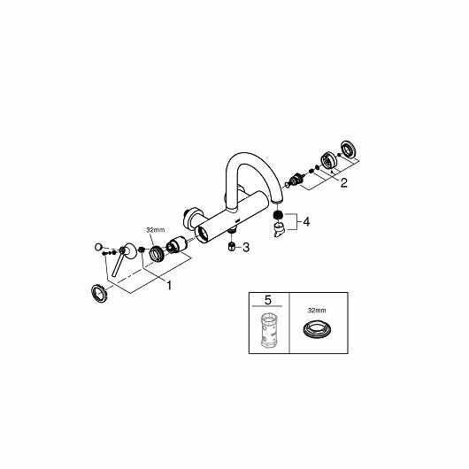 Смеситель однорычажный GROHE Atrio New для ванны, настенный монтаж, хром (32652003)