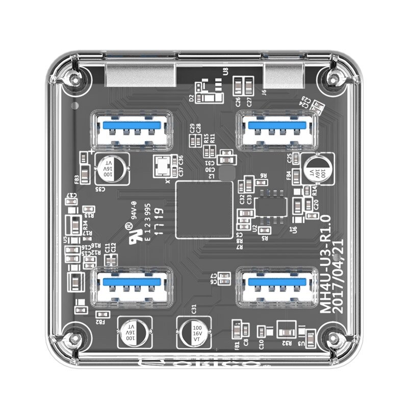 USB-концентратор, на 4xUSB-A 3.0 порта, Orico MH4U-U3, прозрачный [ORICO-MH4U-U3-10-CR-BP]
