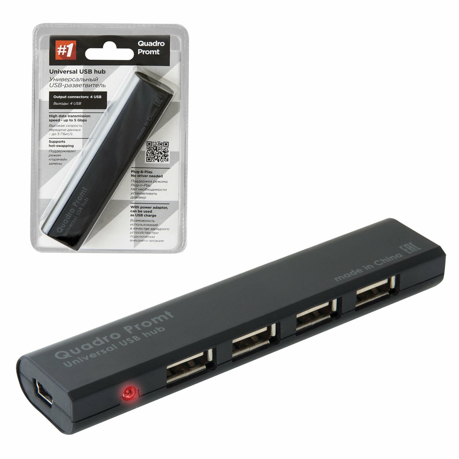 Универсальный USB разветвитель Quadro Promt USB 2.0, 4 порта 83200
