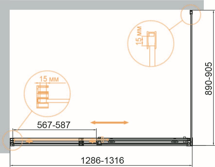 Душевая кабина Душевой уголок CEZARES DUET SOFT-AH-1-130/90-C-Cr