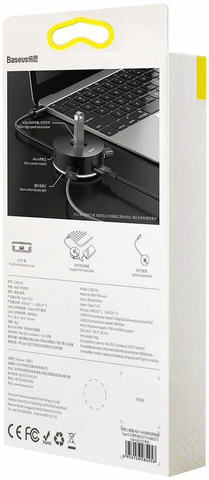 USB-концентратор Baseus round box Type-C HUB (CAHUB-G02), разъемов: 4, белый