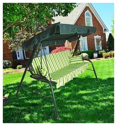 Качели садовые 3-х местные Мебельторг Стандарт Nova Каркас зеленый/Зеленый рис.полоска